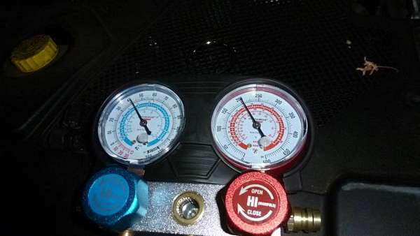 – If you don’t have a VCDS, buy an AC manifold set from harbor freight or amazon for $44-55 and you can check without any problems:
