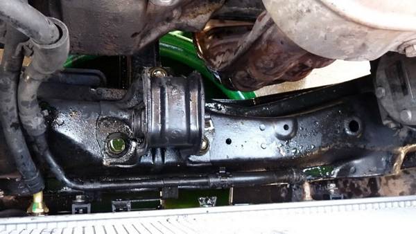 In order to get the bracket for the engine mount out, we need to remove the radiator fans out. Unbolt the mount from the bolt side (left hand side with 17mm wrench or socket), we needed the breaker bar & extension to turn it loose.