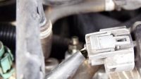Go inside the car and flip the heater lever to ON position, remove the heater intake line.