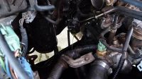 When the water stop dripping out of the heater valve, then it’s time to put back the radiator, heater hose and fill up with coolant. Since we don’t drain the engine coolant out of the engine, we assume it has all clear water, pour in 1 gallon of unmixed coolant first.