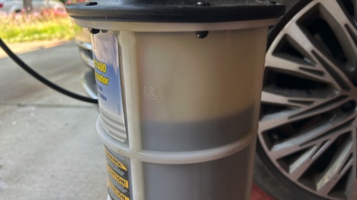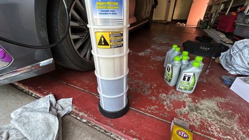 7. When 6.5L of oil is out, remove the hose and plug the tub with the plug. Fill up the oil with 7 quarts only. Check the oil after running engine for a few minutes, wait for 2 minutes and check, it should be needing .5-.8 quart more, if not, the oil extractor didn’t get out all the oil.