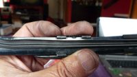 –The middle of the new rubber blade must be trimmed to clear the center pin of mounting mechanism for flat installation, not being pushed out by this pin.