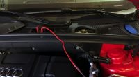- : I left the interior lights on for 2 days and the battery went down to 9V. The key fobs don’t open/close doors, nothing. The battery is located under the spare tire, there are positive and negative poles in the engine bay, so don’t charge or jump the battery from the battery itself, must use these 2 poles in the engine bay. The original battery is AGM so charge with the setting accordingly.