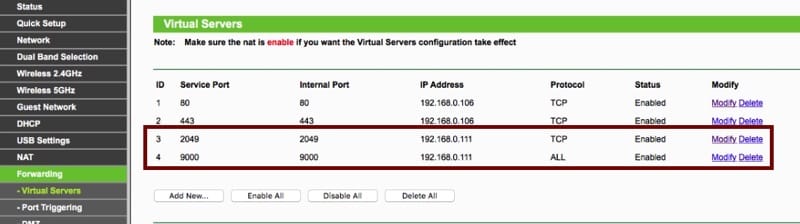 Importantly, make sure to configure port forwarding in the router for both port 9000 and 2049 for remote access. Make sure the ip address is the box address (static).