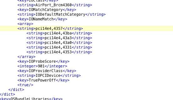 Since everything is working well, now, it’s time to replace the Intel Wifi-Bluetooth combo with proven working HP Broadcom BCM943225HMB Wifi – Bluetooth combo. In order for the Yosemite to recognize the Wifi and load Bluetooth reliably, we need to inject device ids 4357 and 217D to IO80211Family.kext and IOBluetoothFamily.kext.