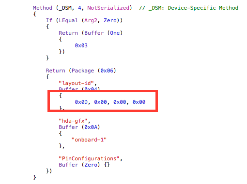 2. Patch DSDT with audio layout 13 = 0D and change B0D3 to HDAU with layout id 13 = 0D (for other graphics card use different layout from audio and inject in Clover for HDMI).