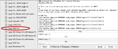 Add the patch fix_irq from Rehabman and hdef patch to id layout 12 to 3.
