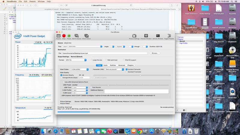 If we patched and generate SSDT’s correctly with ssdtPRGen.sh, we should achieve the idle @ 800Mhz and maximum Turbo designed by the manufacturer.