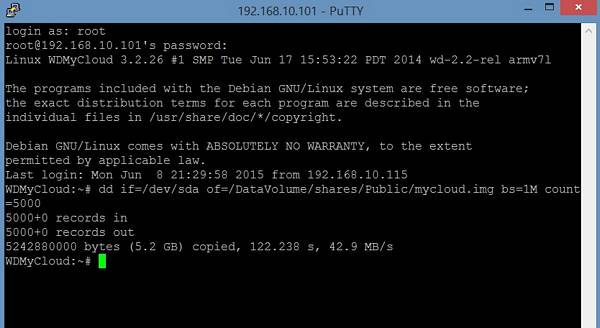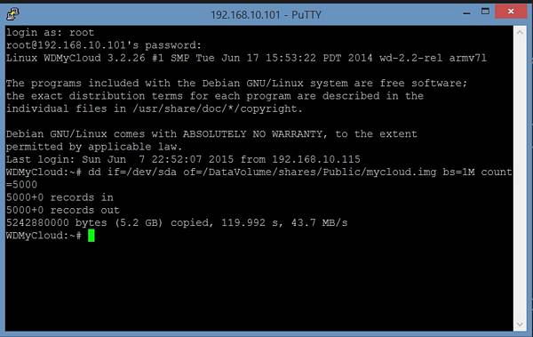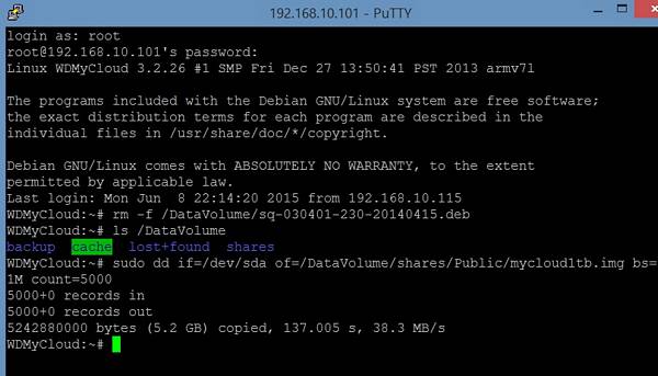 dd if=/dev/sda of=/DataVolume/shares/Public/mycloud1tb.img bs=1M count=5000