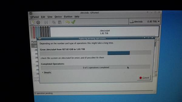 – When it’s done, need to use gparted to extend the EXT4 partition from 1TB to 2TB.