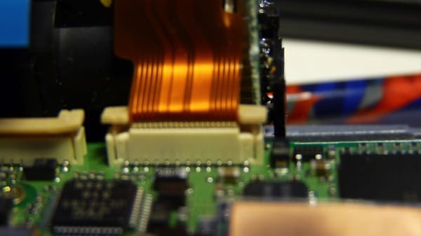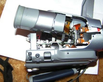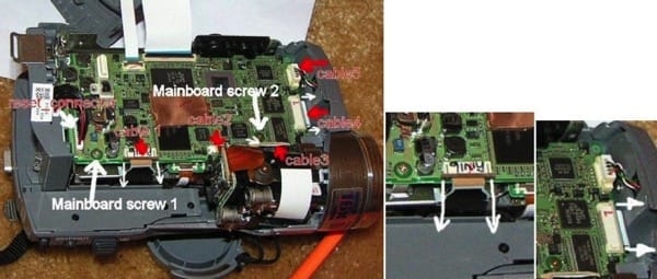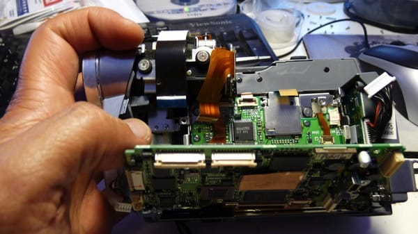 Remove the top cover and split the camera from the back (battery) with care, slowly and firmly, NO yanking please, if you can’t split it with little force, there’s still a screw that you missed.