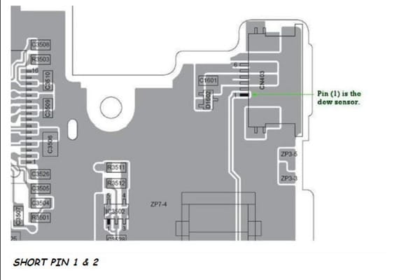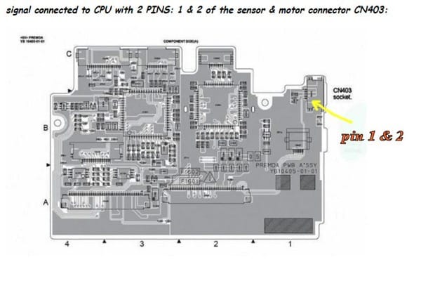 The goal is to fake a good sensor so the CPU doesn’t shutdown the system by giving the JVC SOD, per JBS138, DEW sensor signal connected to CPU with 2 PINS: 1 & 2 of the sensor & motor connector CN403: