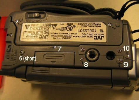 Well, for those who own any type of JVC DV camcorders in the last few years or even many years could see these screen of deaths or EO4 remove battery… I like JVC due to their quality of pictures in low light, when it’s working, it’s a pretty competent piece of device. This write up is to solve Condensation problem. I will find the EO4 problem some how to fix my other JVC (I’m totally into JVC because of the price and low light performance). Thanks to all the owners who have the problem and try to solve on the CNET website, I collect all the information available and solve this problem once and for all. **** This procedure is to BY PASS the DEW sensor totally, which means that the DEW sensor is NO LONGER working, which means that the recording HEAD may be damaged when the humidity or condensation is really high or actually there. SO DO THIS WITH YOUR OWN RISK **** Your other choice is to turn it on and stare at the screen and save your JVC PRESCIOUS HEAD… or spend $200-300 to get it fixed by JVC authorized dealers and I remembered I got this one for less than $300.00… **** This fix is possible thanks to JBS138 & SAMJWILSONJR on the CNET forum. ****** MAKE SURE YOU GROUND YOURSELF WELL BECAUSE STATIC CHARGE CAN KILL SOME SENSITIVE DEVICES ***** 11 screws of SAMJWILSONJR: