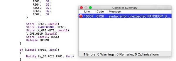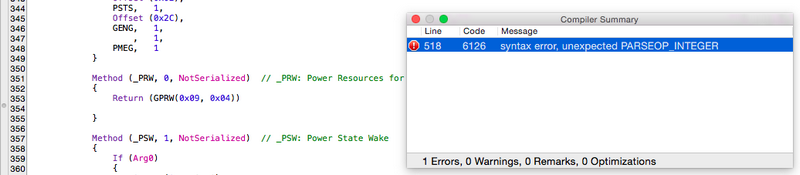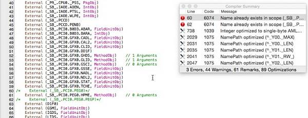 Patch DSDT And Common Errors idog | November 16, 2015 | 16 views 6114 Result is not used, operator has no effect 6126 Parseop_Integer Snow Leopard 10.6.3 On Acer Netbook AO751HCreate USB Snow Leopard MBR Installer<<1...282930313233