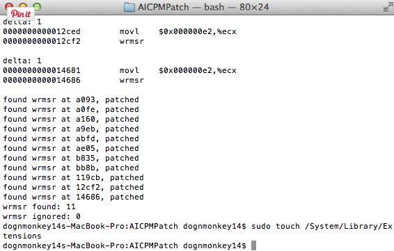 AICPMPatch: this is to patch the AppleIntelCPUPowerManagement.kext for C-states and P-states to work and to remove NullCPUPowermanagement.kext from Extension folder without Kernel Panic.