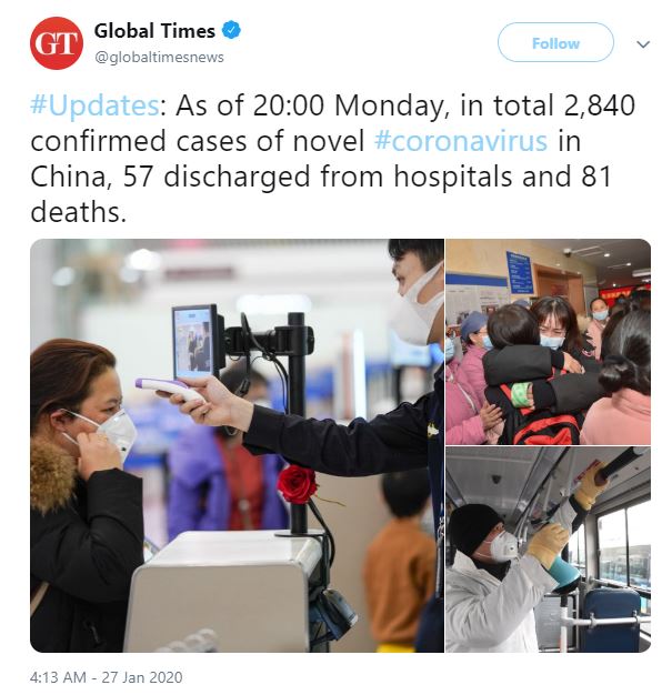 - According to GT (Global Times) 2840 cases and 81 deaths confirmed.