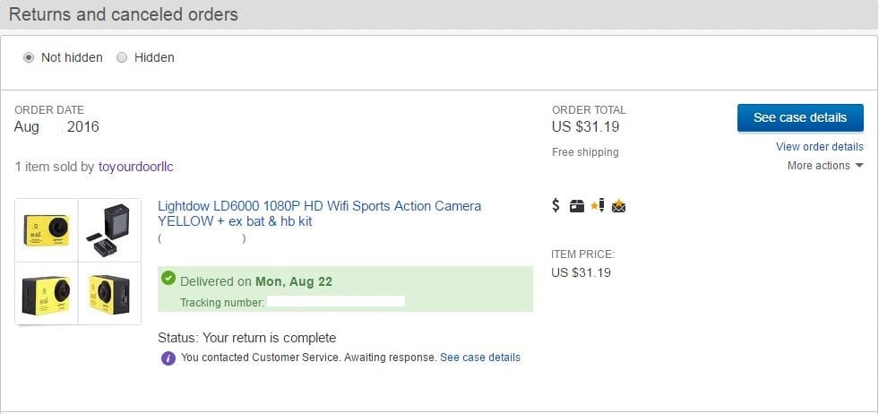 As I promised, I gave 5 stars for the Blue LD6000, but 4 stars for Yellow LD4000 in place of LD6000 and a note that they sent the LD4000 instead of LD6000. I was OK with both of the cameras for $62. Until Ebay sent me a note that they had removed my feedback on the LD4000 because of whatever the reasons, now, to me this is BIASED and FALSE on Ebay side, Ebay can’t remove honest feedback from consumers to protect NOT so honest Sellers regardless of how much money they contribute to Ebay, where is Ebay integrity?
