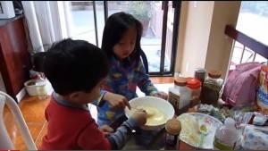 At least one weekend a month, Chef Audie cooks french toasts for breakfast. She doesn’t like to eat french toasts that much, but she sure like to prepare and play with them, especially with her helper on the side, Brandon. He’s a little older now, and he wants to participate. We do enjoy the cooking show.