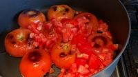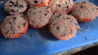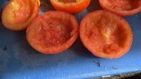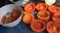 - To stuff the halves tomato real tight using the spoon to round the edge and pressed down.