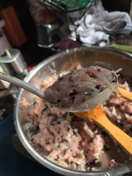 - Make sure to mix meat, onions, mushrooms, mung been well with salt, garlic powder, msg, fresh ground pepper for great taste, not too salty or flat.