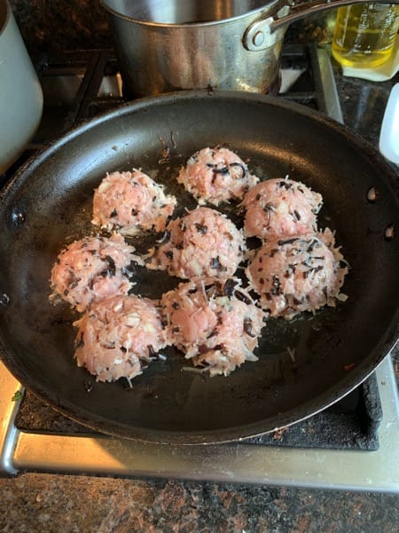 - To make the meat balls, also use a deep spoon and press down the meat tightly or it will break in pieces. After the molding is done, just flip the spoon over the frying pan, it will fall down nicely.