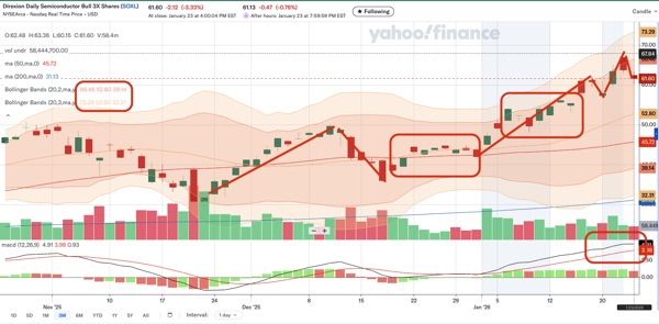 2. SOXX is Semiconductor ETF and SOXL is leveraged 3x of SOXX, which is great when the market goes up, but extremely bad when the market goes down because it’s 3 times the gain and 3 times the loss. I’ve been doing this for 3 years now and I know how to trade SOXL.