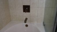 Now, put some nylon wedges supplied between the glass and the rail slot from the inside of the tub. Install the hardware for the sliding door.