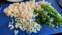 - ginger, hoisin sauce, chopped water chestnuts,green onions, olive oil, ground chicken, garlic