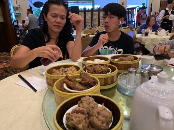 We love chicken feet, stripes, beef balls, shrimp dumplings, Xiu Mai, soft meat rice cakes, tofu wrapped meat and everything we see appetizing.