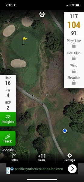 - #16 Hole par 4. Avoid left or right to trees and ravine.