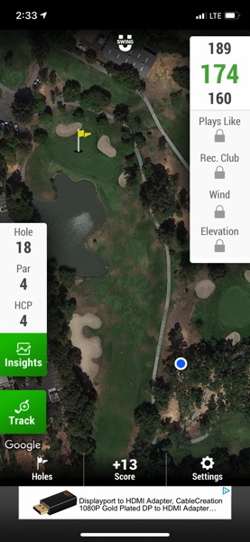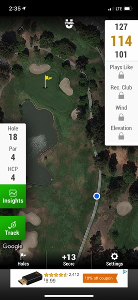 - #18 Hole par 4. Avoid left or right to trees and fences. Good T-shot will set you at 100-120 yards. Watch out for the water in front of the Green –