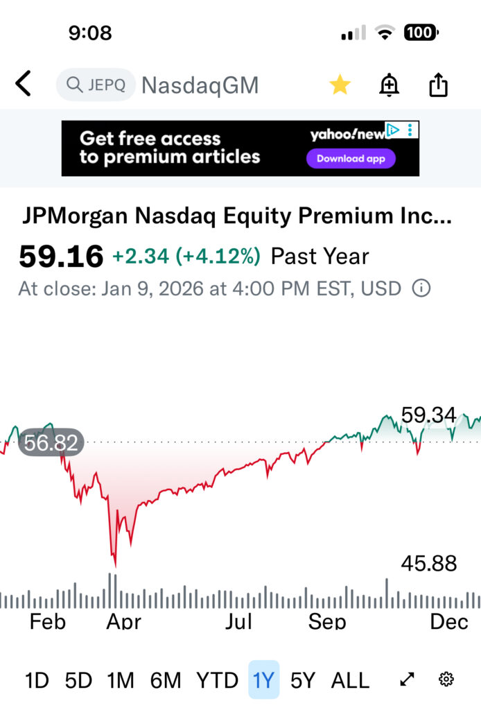 Năm nay là năm đầu tiên mình về hưu, thay vì để tiền không xài trong Fidelity lấy dividend từ SPAXX hay FRGXX được 3.4%, mình sẽ mua hai high yield ETF JEPQ và SPYI theo NASDAQ và SP500 để được >10% một năm. Năm 2025 hai ETF này lên 4% tiền vốn và trả trên 10% năm rồi. Năm nay sẽ bỏ vào $250k để được $25k/năm = $2k/tháng cho tiền sở hụi hàng tháng. Lúc trước mình có mua “Y” nhưng bị mất giá theo thời gian nên không mua nữa. Thiệt ra NASDAQ và SP500 sẽ lên theo thời gian thì vốn sẽ không mất mà dividend sẽ có hoài.