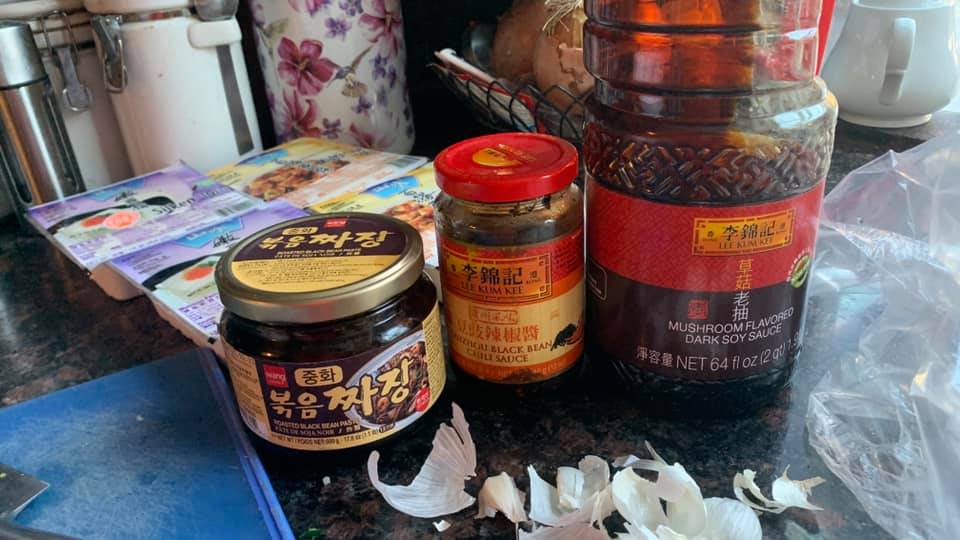 Xào đều tới khi thịt không còn mầu đỏ. Pha bên ngoài một bát sì dầu, black bean paste, chili oil, đường, dầu mè, nước lạnh, nếm cho vừa ngon, không đậm quá.