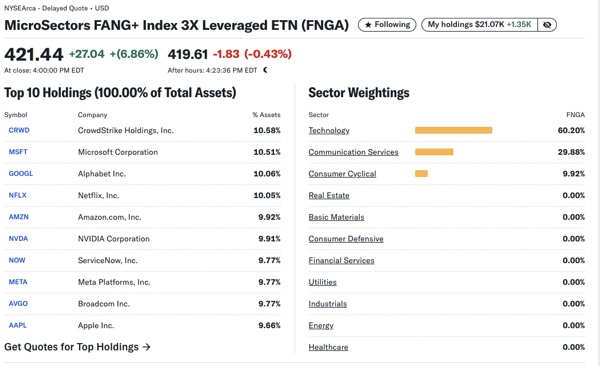 FNGA: META, AVGO, CRWD, NOW, MSFT, GOOGL, NFLX, AMZN, NVDA, AAPL, đây là những hãng mạnh nhất của FAANG và trong SP500. SP500 FNGA sẽ lên x3, cao là $690.