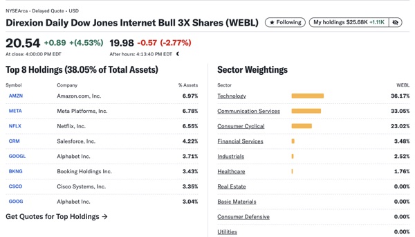 WEBL: META, AMZN, NFLX, CRM, GOOGL, BNKG, CSCO, GOOG – cao là $34.
