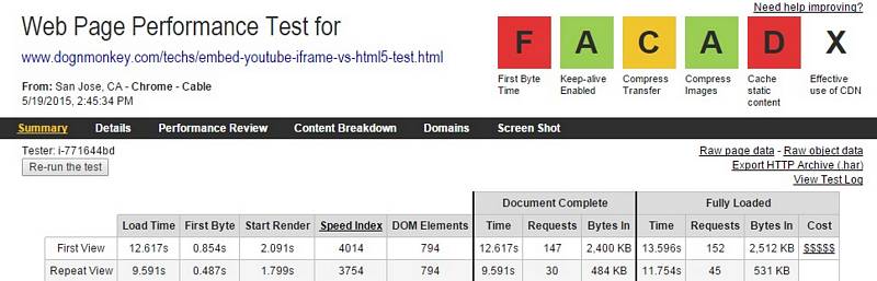 I modify the original script to add full screen option. I’m loading these 3 youtube videos to compare the loading time with the same html5 embedded ones.
