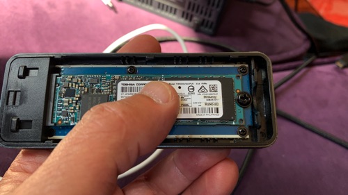 After replacing the NVME small capacity with the big ones, I have a few extra NVME M.2 2280 that need the external USB to use as portable hard drives. I found this one one Amazon for $13 and it works great, except it came with missing a hold down rubber pin. Anyhow, I improvised with a small PC screw and a rubber ear plug for it to work perfectly. This is a tooless case so it’s quite easy to install and uninstall the drive. Just make sure your drive is compatible with this one. The speed is quite fast and it gets a little hot because the plastic case. The case is quite sturdy IMO.
