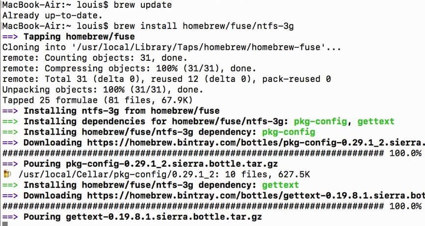2018-03-21 In case the ntfs-3g no longer works after Windows updates or macOS High Sierra update, we can re-install ntfs-3g by updating:
