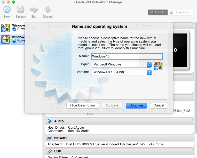 Windows 10 Preview is available for download, I tried it on Yosemite 10.10.1 VM VirtualBox and it works very well. Now, I don’t have to boot to Windows 8.1 to use some Windows Software any more.