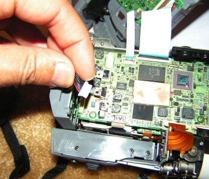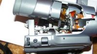 Remove the top cover and split the camera from the back (battery) with care, slowly and firmly, NO yanking please, if you can’t split it with little force, there’s still a screw that you missed.