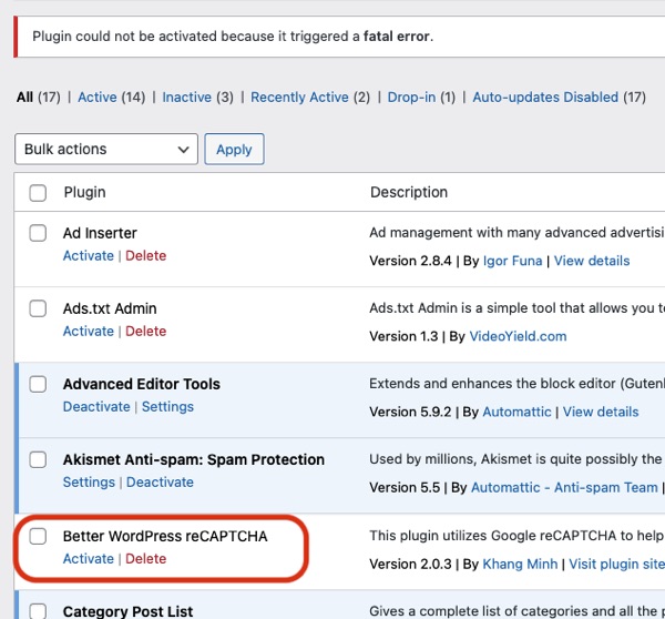 Since php 7.4 is end of life, we need to upgrade from 7.4 to 8.3 and our server is with Inmotion Hosting. Every time we upgrade to php 8-8.3, the website shows errors and couldn’t load. After trials and errors and we found 2 plugins that didn’t work. Removed them and everything works fine: Popular Widget and Better WordPress reCapcha.